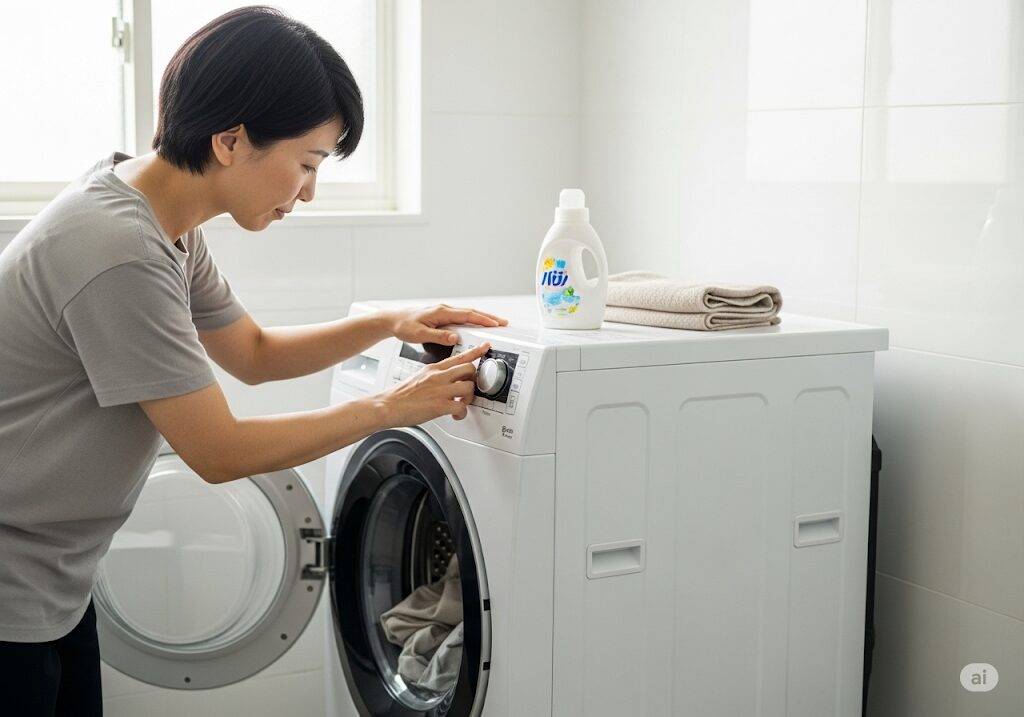 最後に、すすぎをしっかり行いましょう。ポリマーや洗剤の残りをしっかり洗い流すことで、衣類がすっきり仕上がります。念のため、すすぎコースを一回余分に回しておくと安心です。